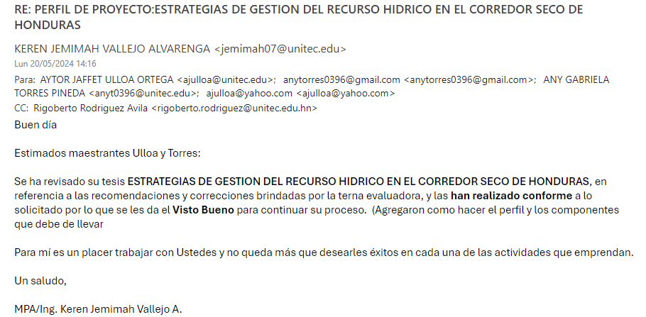 El proyecto se enfoca en mejorar la gestión del agua en los departamentos de Choluteca y La Paz mediante un enfoque integral y sostenible. Con el objetivo de comprender las condiciones actuales del agua en la región y proponer soluciones efectivas, se ha empleado un enfoque mixto que combina datos cualitativos y cuantitativos. Este enfoque se estructura en tres etapas de evaluación: perfil inicial, estudio de pre factibilidad y proyecto definitivo. Durante el análisis, se ha identificado un retorno social de inversión (SROI) de 13.99, lo que indica un impacto significativo en las comunidades locales. Esta métrica destaca la eficacia de las estrategias propuestas para mejorar la disponibilidad y calidad del agua, así como su contribución al desarrollo sostenible en la región. Se espera que la implementación de estas estrategias no solo aborde los desafíos actuales relacionados con el agua, como la escasez y la contaminación, sino que también promueva un cambio positivo en las condiciones de vida de las comunidades locales. Además, se prevé que estas medidas fomenten la resiliencia y la sostenibilidad a largo plazo en el Corredor Seco.
